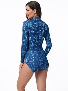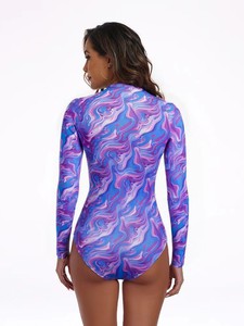 欧美跨境热卖新款海边戏水泳装全彩3d数码印花女长袖连体泳bikini