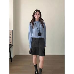 法式气质文艺风长袖衬衫百褶短裙女装2025秋冬新款小个子时尚套装