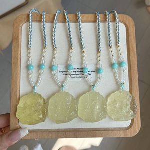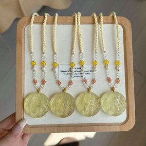 天然巴西黄水晶九尾狐吊坠精湛雕工晶体干净编绳水晶项链工厂直销
