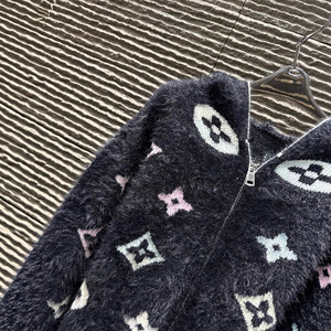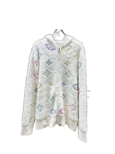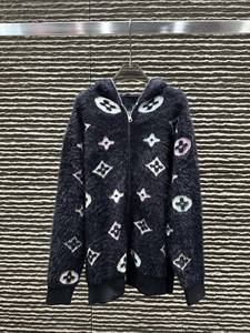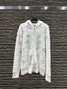 L25秋冬新款慵懒感时髦舒适彩色logo连帽水貂绒开衫