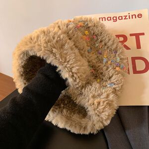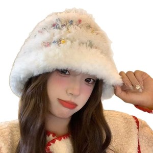 彩色小糖豆毛绒渔夫帽女秋冬季显脸小百搭毛线帽大头围帽子水桶帽