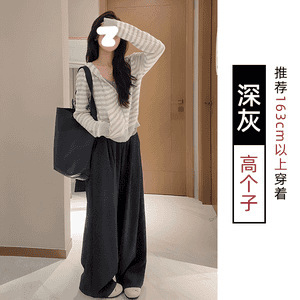 灰色糯米裤女秋季2025新款小个子宽松慵懒软糯垂坠感阔腿直筒裤子