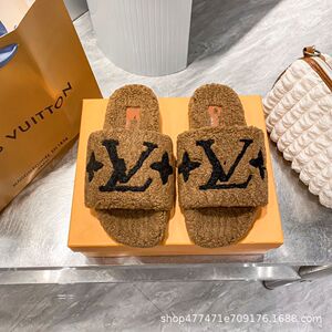 驴家毛毛拖鞋女外穿2025秋冬新款羊羔毛拖鞋字母厚底毛拖一脚蹬