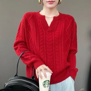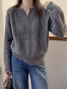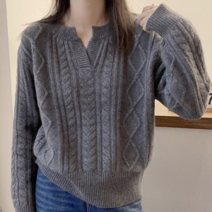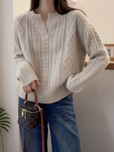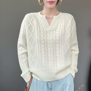 时尚宽松麻花纹针织衫秋冬新款休闲宽松百搭套头打底衫长袖毛衣女