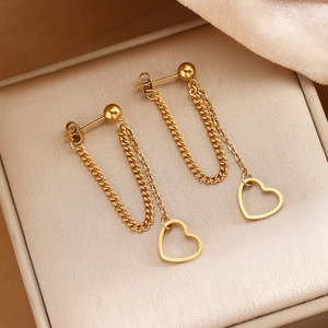 不锈钢跨境新款耳钉百搭中长款桃心耳线ins气质简约文艺女款耳饰