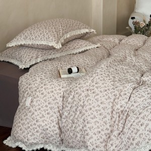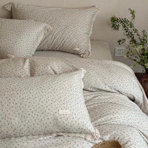 法式复古小清新全棉a类针织棉被套柔软裸睡亲肤天竺棉床笠四件套