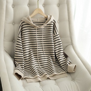 韩版休闲宽松连帽条纹毛衣2025年秋装新款洋气宽松长袖针织上衣女