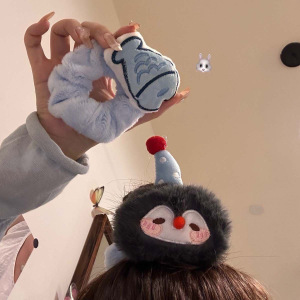 可爱企鹅小鱼发圈毛绒发绳萌趣卡通表情皮筋学生丸子头绳搞怪批发