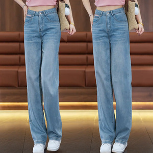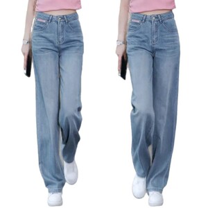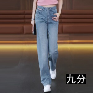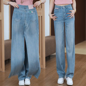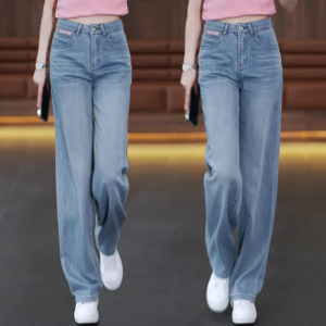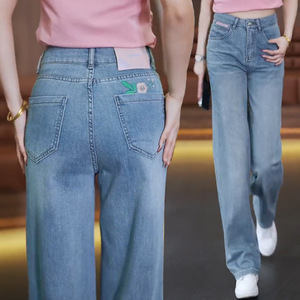 牛仔阔腿裤女士2025秋季新款高腰刺绣时尚百搭高腰宽松休闲直筒裤