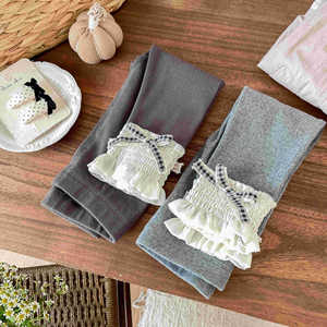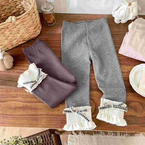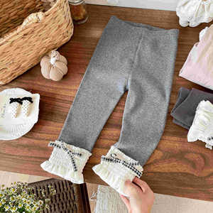 童装可爱花边打底裤灰色裤脚类似蝴蝶装饰女宝宝百搭公主长裤子秋