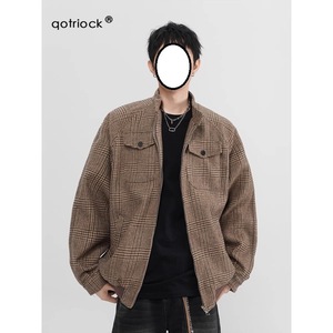 秋季小香风潮牌千鸟格纹口袋工装夹克复古休闲高级感立领外套男款