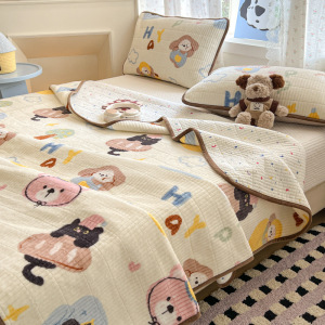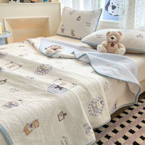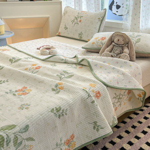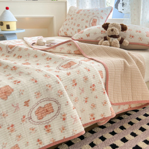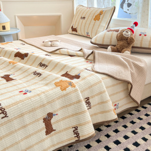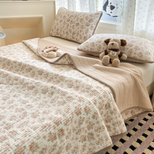 秋冬跑量款一面绒一面双层纱绗缝夹棉床盖学生宿舍床单榻榻米炕盖