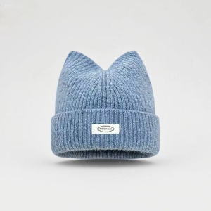 猫咪耳朵针织帽女秋冬季保暖毛线帽显脸小百搭大头围可爱时尚帽子