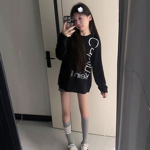 胖mm字母纯棉大码长袖t恤女秋季新款潮牌内搭显瘦宽松打底衫上衣