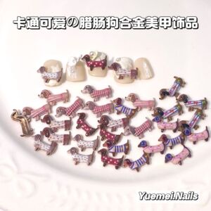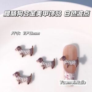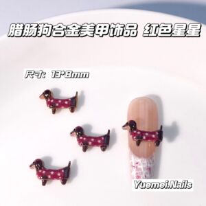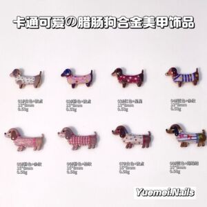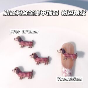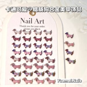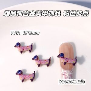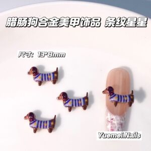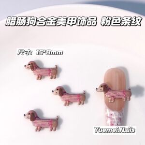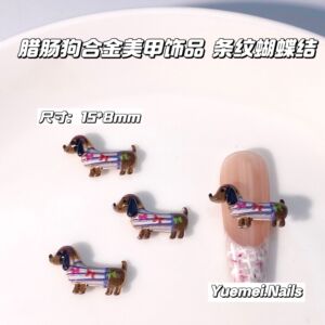 新款彩色腊肠狗合金美甲饰品条纹波点星星蝴蝶结腊肠小狗指甲装饰