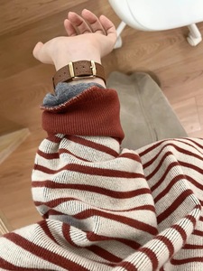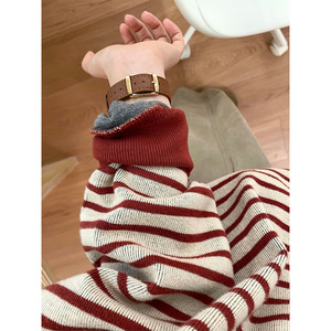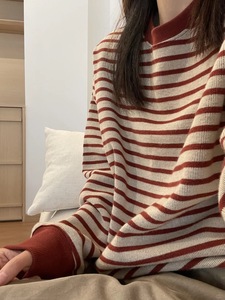 MISSMAR 韩系慵懒红色条纹圆领卫衣女秋季2025新款宽松休闲上衣