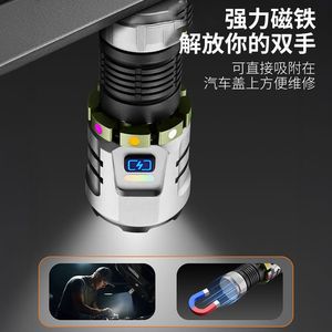 新品多光源强光手电筒强磁多功能便携式超亮手电陀螺旋转解压神器