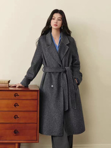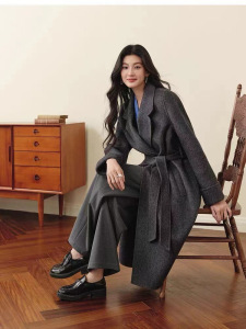 诗**黎女装2025秋冬新款羊毛双面呢宽松西装领大衣外套7G8470301