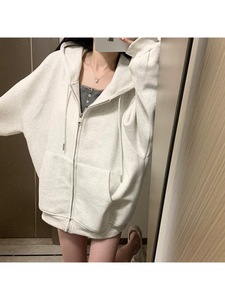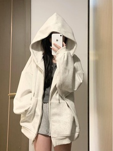 美式复古街头连帽卫衣女春秋oversize薄款外套chic慵懒开衫上衣