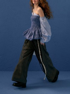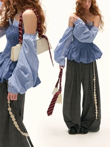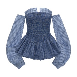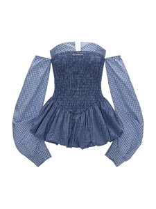 条纹打揽抹胸泡泡裙秋季新款海边连衣裙女蓝色高级拼接裙子