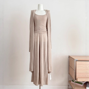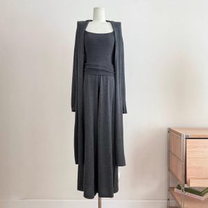侘寂清冷感 45支高品羊毛纱老钱针织开衫吊带长裤套装