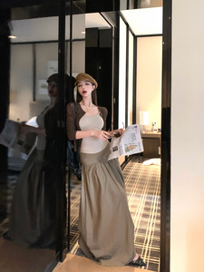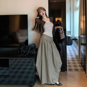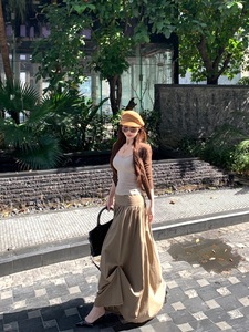 实拍2025毛混纱菱格编织开衫亚麻棉复古毛边不对称茧型半裙套装