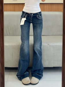 【韩牛】辣妹低腰2025年秋季水洗新款牛仔裤美式复古显瘦拖地裤子