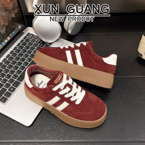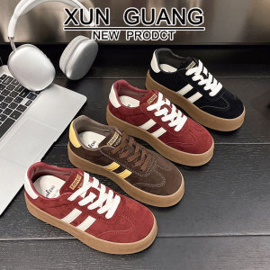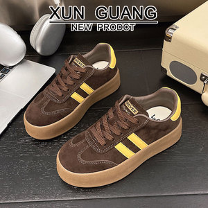 真皮复古厚底德训鞋女2025秋季新款百搭时尚增高运动休闲板鞋女鞋