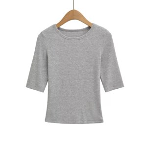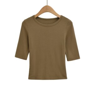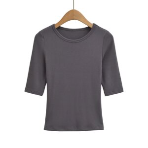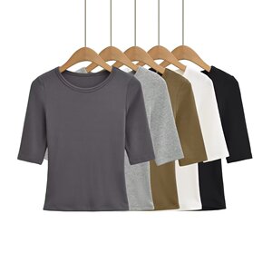 XZ2567-25秋季新款 欧美风纯色简约基础款中袖圆领打底衫上衣T恤