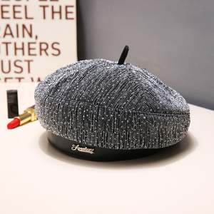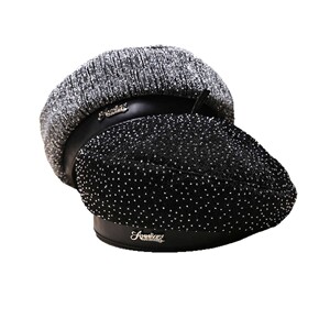 韩版水钻满天星帽子女秋冬显脸小贝雷帽休闲百搭演出高级感画家帽