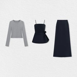 2025秋季设计感小众显瘦简约上衣~吊带~半裙套装