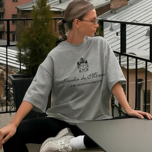 美式复古时尚气质潮流个性字母印花hiphop宽松舒适纯棉短袖T恤女