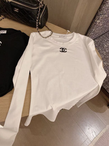 25SS高版本香家新款高弹力品质刺绣百搭修身简约螺纹刺绣上衣打底
