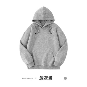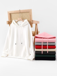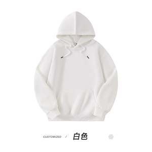 新款白色华棉套头连帽帽衫外套早秋美式宽松长袖上衣男士纯色卫衣