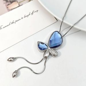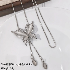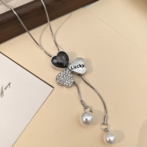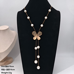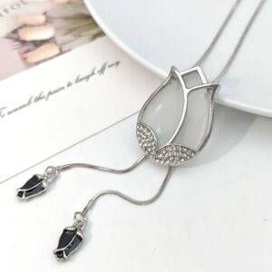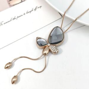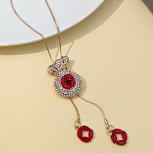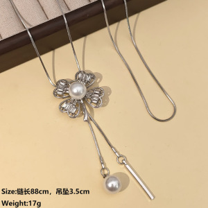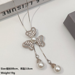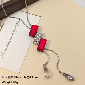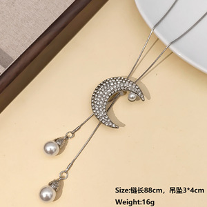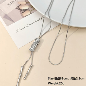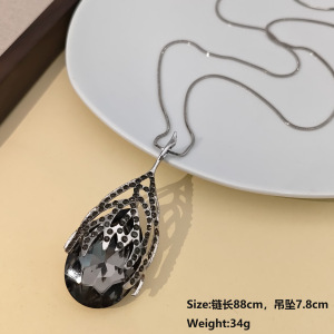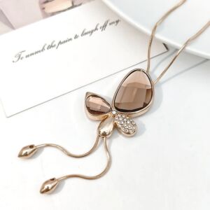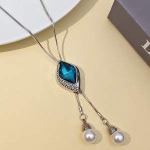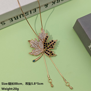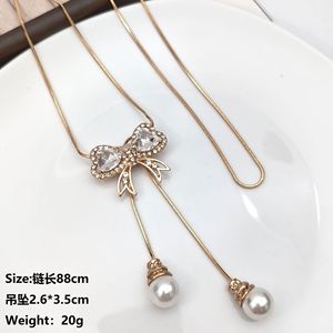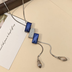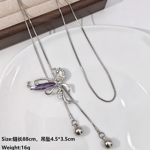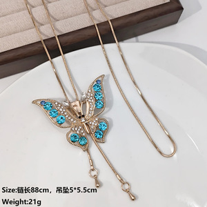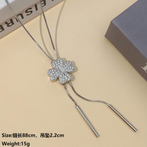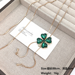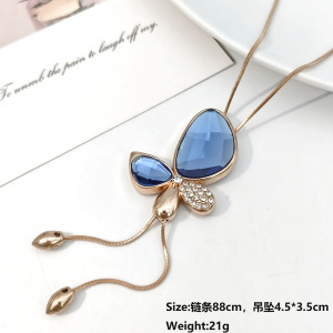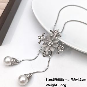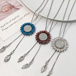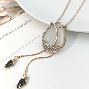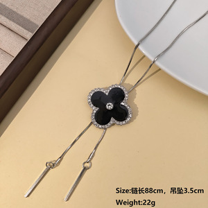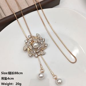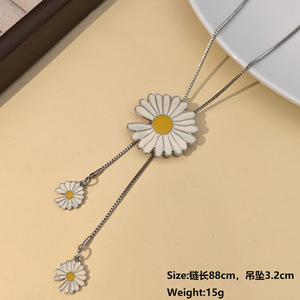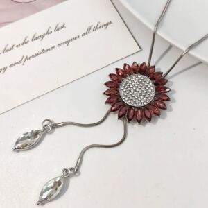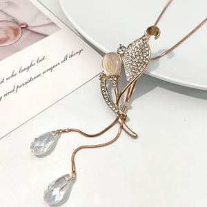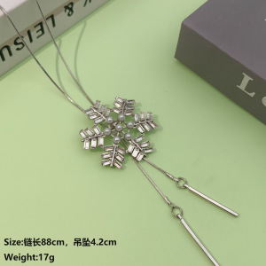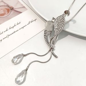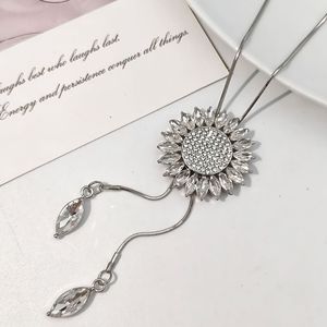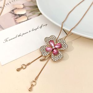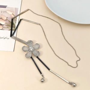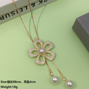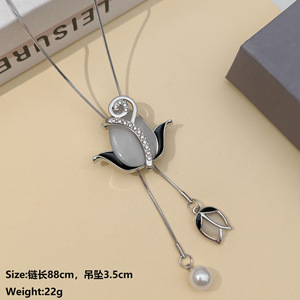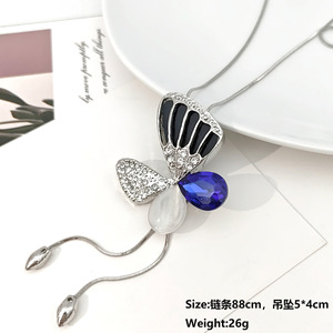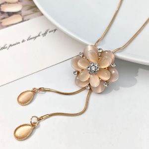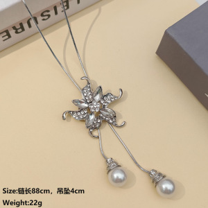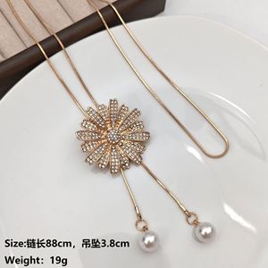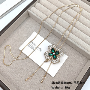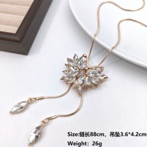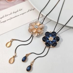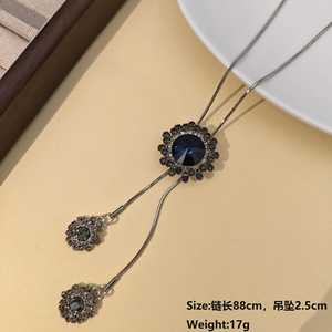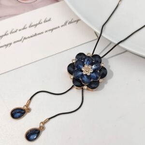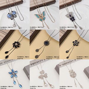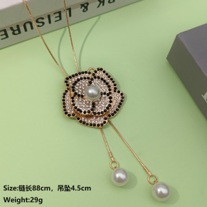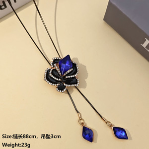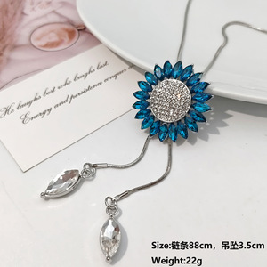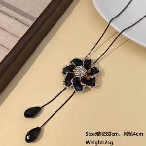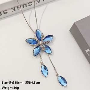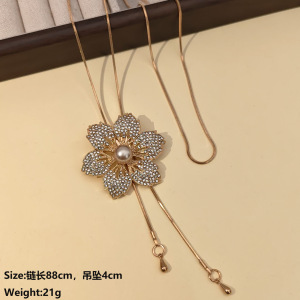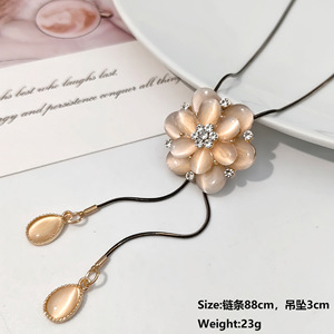 日韩时尚百搭长款项链女水晶玫瑰花朵吊坠秋冬季毛衣配饰饰品毛衣