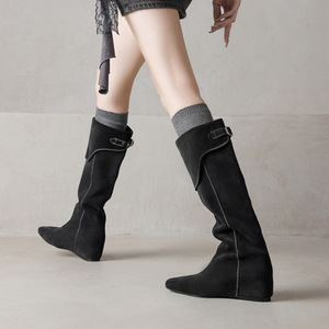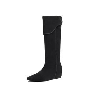 女士时尚波西米亚风2025方头高跟内增高高筒长靴不过膝复古西部靴
