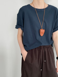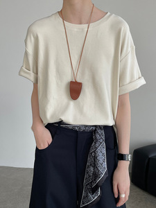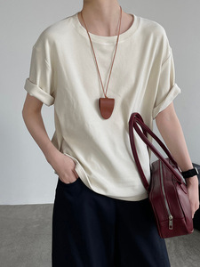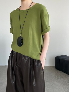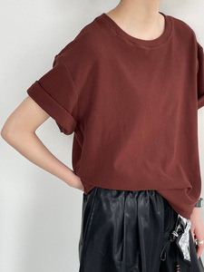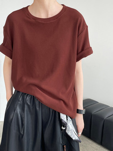 滔川 正肩磨毛纯色短袖T恤女25秋韩版休闲宽松圆领百搭上衣2803