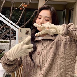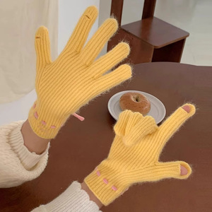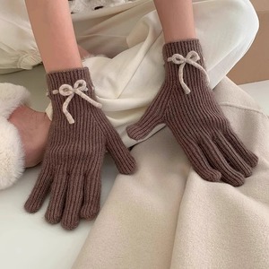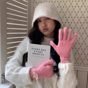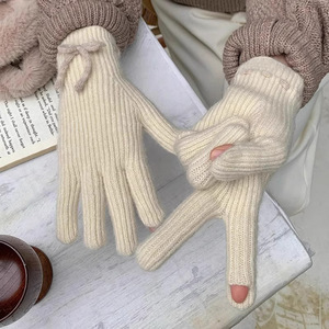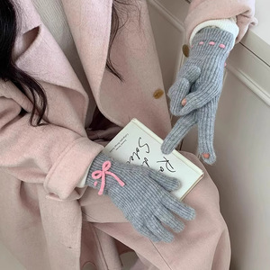 含羊毛针织蝴蝶结手套女学生可爱韩版秋冬骑行保暖潮韩国露指手套