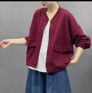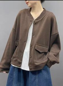 新款简约文艺立领单排扣背后字母设计百搭开衫纯色休闲外套