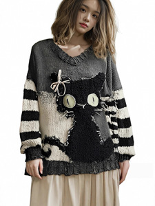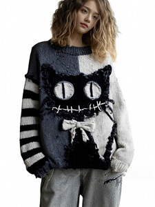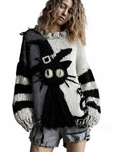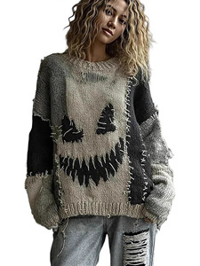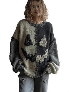 现货新款亚马逊欧美跨境宽松毛衣针织衫女套头女装数码印花中东