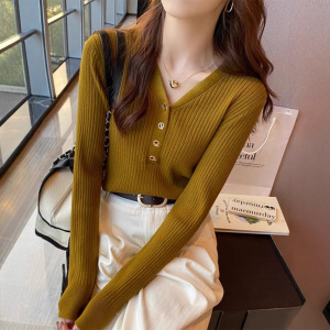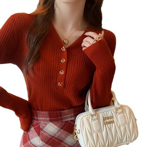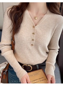小香风秋冬针织打底衫女内搭2025新款v领软糯修身毛衣长袖春上衣