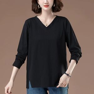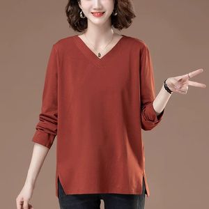 2-300斤中年妈妈秋装新款长袖t恤女宽松大码时尚开叉v领上衣女ins