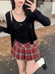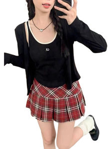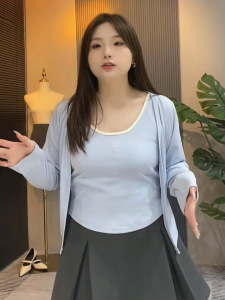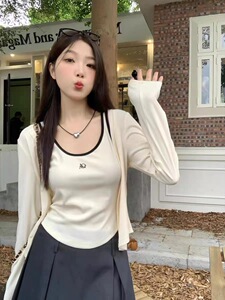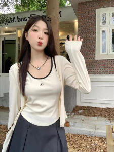 大码女装胖mm秋季新款遮肚显瘦套装甜辣小上衣吊带长袖开衫两件套