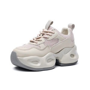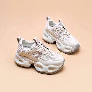 网红老爹鞋女2025春季新款厚底真皮运动鞋轻便圆头内增高休闲鞋