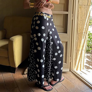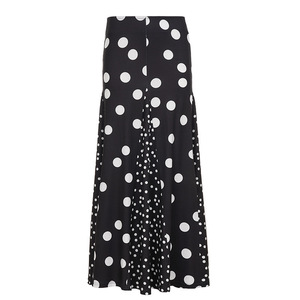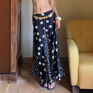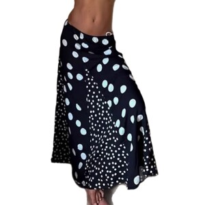法式复古波点印花拼色半身裙2025欧美新款慵懒风随性显瘦A字长裙