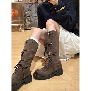 女鞋腿型救星2025年新款可调节英伦风超大腿围高筒腿精长靴5cm