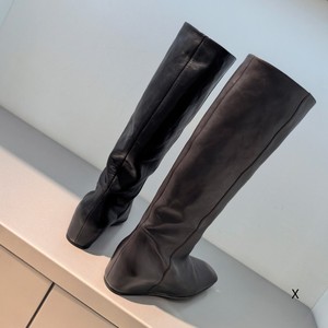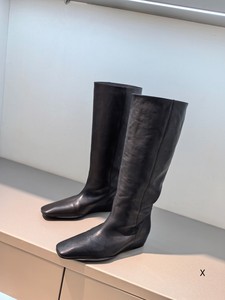 欧洲站XJ女鞋25冬时尚软头层牛皮小方头舒适休闲套筒内增高皮长靴