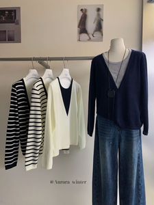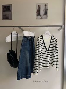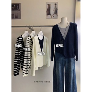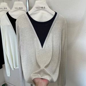 十三行女装2025秋季新款通勤气质简约百搭拼色假两件条纹针织衫潮