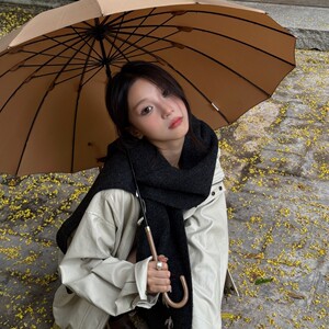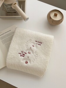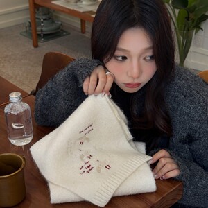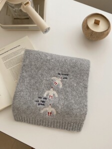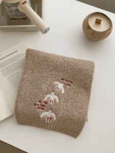 韩国订单2025新款羊毛混纺刺绣围巾秋冬季女纯色针织韩版学生百搭
