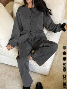 2025秋冬新款欧美跨境亚马逊独立站热卖加厚休闲运动套装开衫女装
